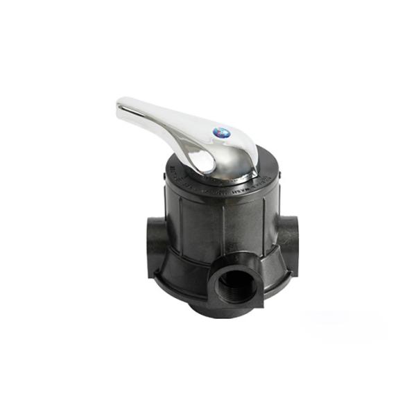 The F56A manual multiport filter valve features a flow rate of 4m³/h and utilizes a corrosion resistant gasket for opening and closing functions. It can be used as a service, backwash, and fast rinse valve, even under pressure. With a handle, you can switch the settings easily without turning off the pump or the power. When selecting a valve setting, make sure to always depress the handle before turning.